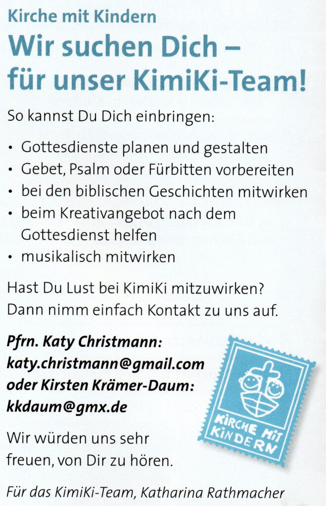 Wir brauchen junge dynamische evangelische Menschen mit Ideen im Team: